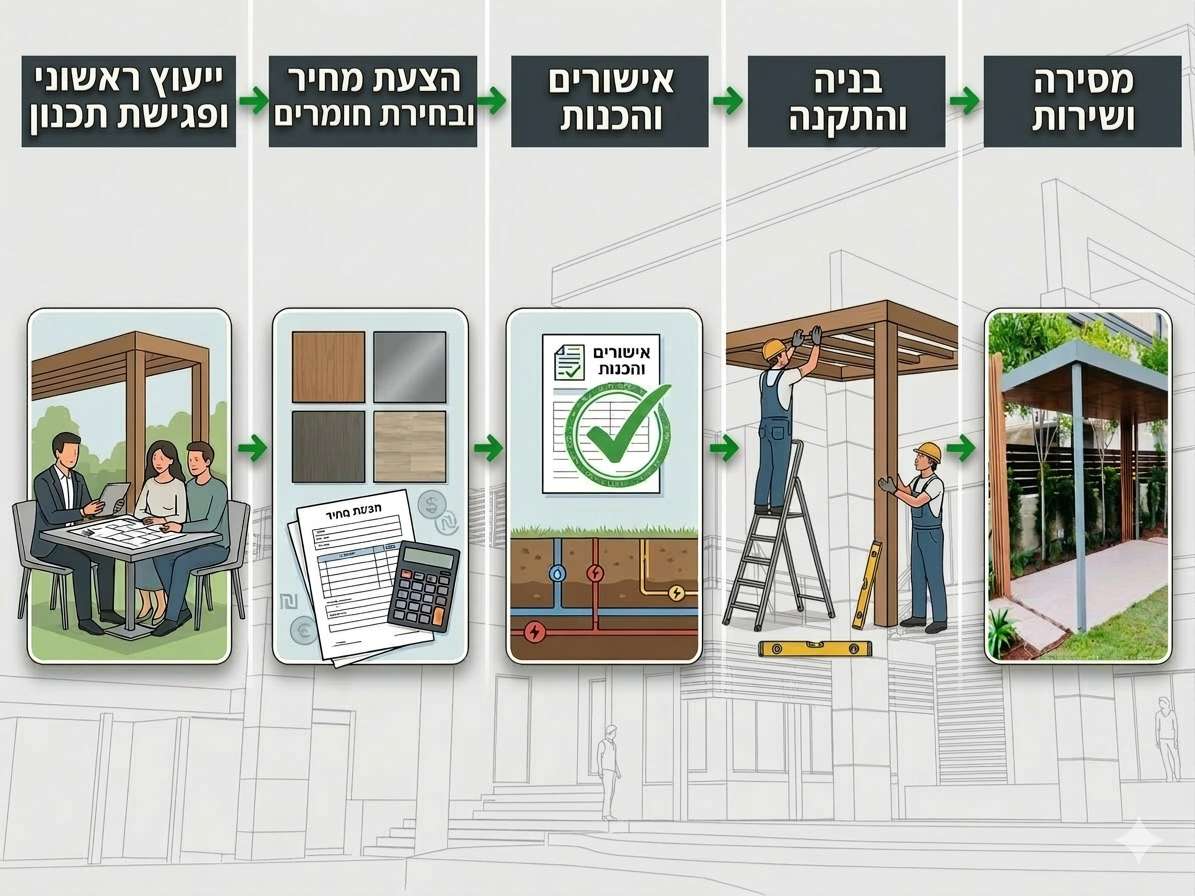 החברה מכינה הצעת מחיר מפורטת בהתאם לתכנון המוצע. הלקוח בוחר את סוג הפרגולה (עץ, אלומיניום וכו') ואת הפרטים העיצוביים.